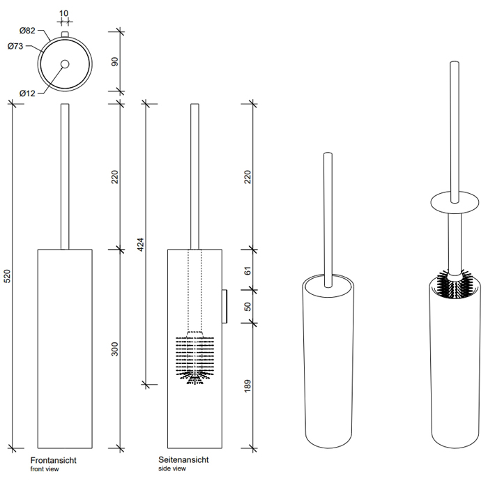 —Decor Walther Stone WBG Туалетный ершик, подвесной, цвет: белый / сталь матовая