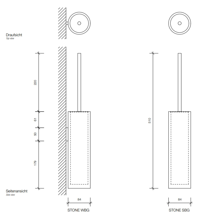 —Decor Walther Stone SBG Туалетный ершик, напольный, цвет: белый / сталь матовая