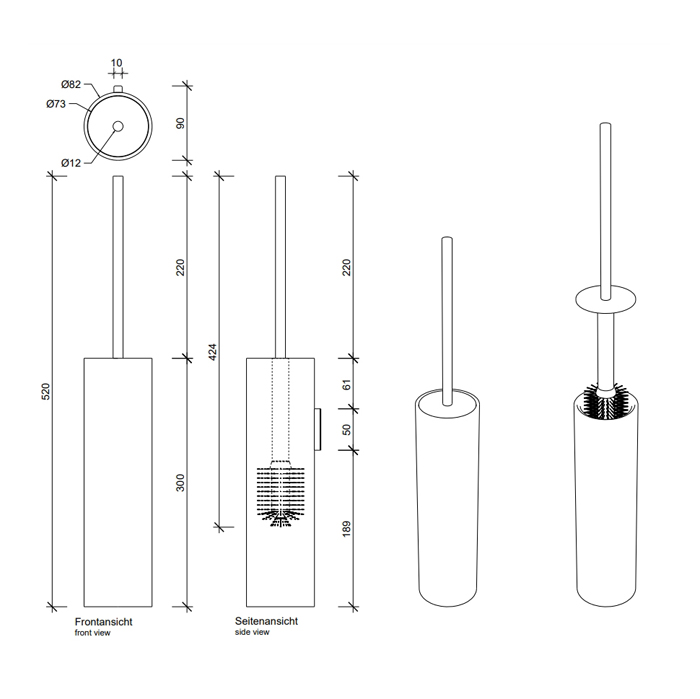 Decor Walther Black Stone WBG Туалетный ершик, подвесной, цвет: черный матовый / хром