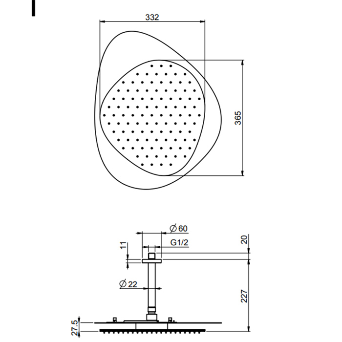 Carlo Frattini Wellness Верхний душ Cloud, в комплекте с потолочным держателем 150 мм., верхняя пластина черная, цвет: хром
