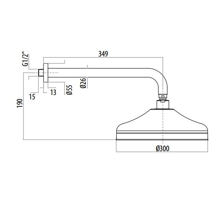 —Gattoni PD Верхний душ классика кругл. D=300mm с настенным держателем 349mm, цвет: хром