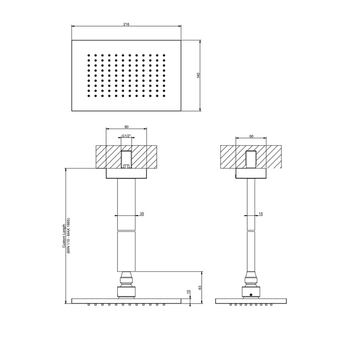 —Gessi Rettangolo Верхний душ для потолочного крепления 216x140мм, высота от 115 до 1865мм, цвет: Black XL