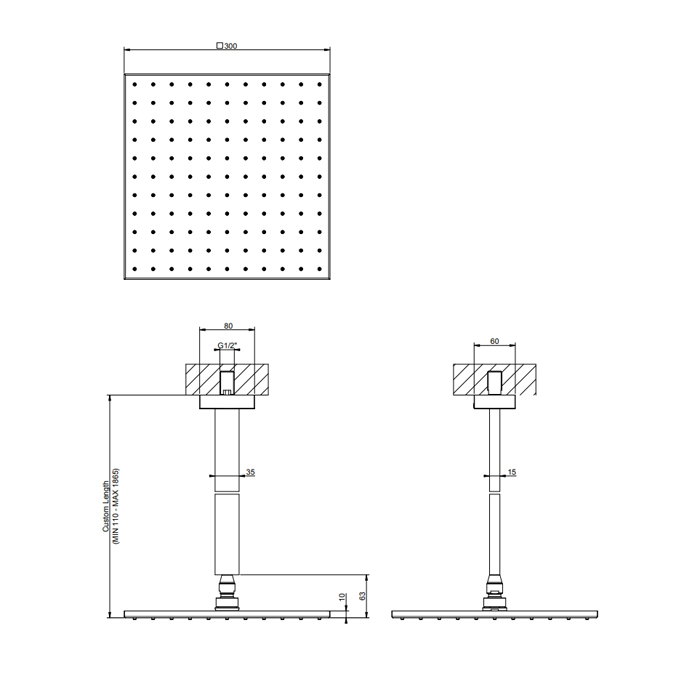 Gessi Rettangolo Верхний душ для потолочного крепления 300x300мм, высота от 115 до 1865мм, цвет: черный