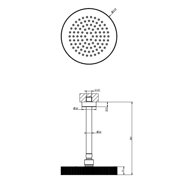 • Верхний душ