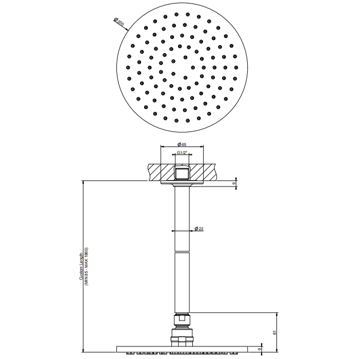 GESSI INCISO Потолочная душевая головка шарнирная на 1/2", Ø200мм, длина изготавливается под заказ, цвет: хром