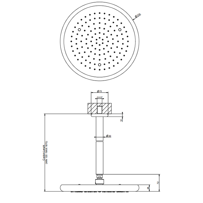 —Gessi Goccia Верхний душ для потолочного крепления Ø306мм с инд.высотой (50-1800мм), цвет: белый