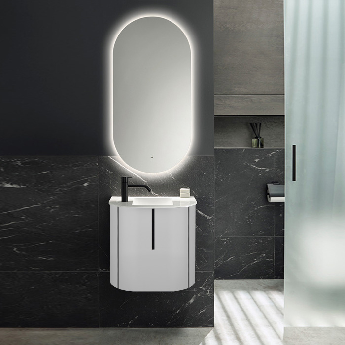 BURGBAD LAVO 2.0 Комплект мебели 530х350х492 мм., с 1 отверстием для смес/ слева, 1 дверь, раковина белая Velvet, ручка черная, цвет белый глянцевый