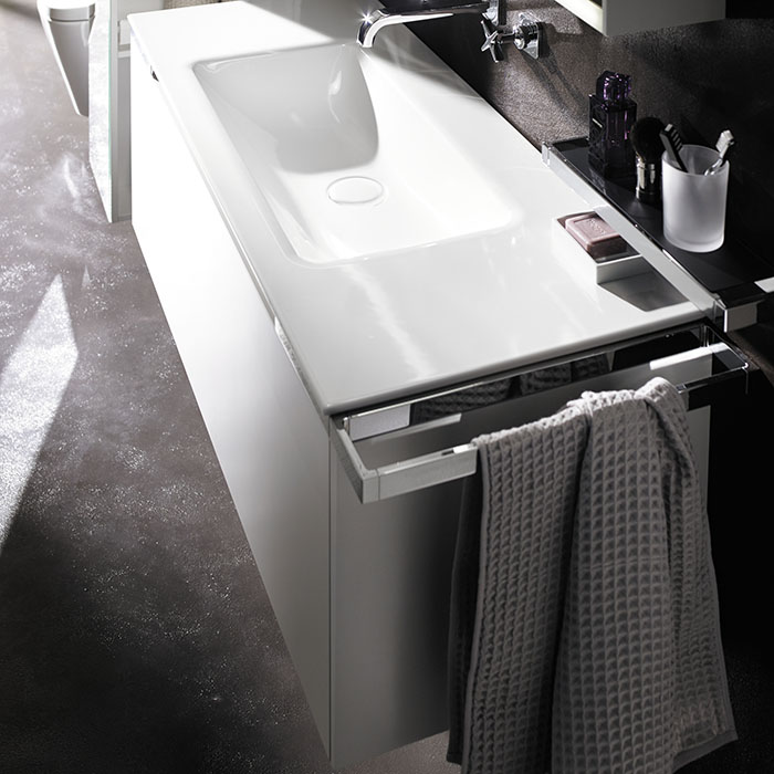 BURGBAD Yso  База с керамич. умыв. 1295х490х452 см. 1 ящик, 1 разделитель.1полотенцедерж. слева, раковина без отв под смес. цвет мебели белый матовый