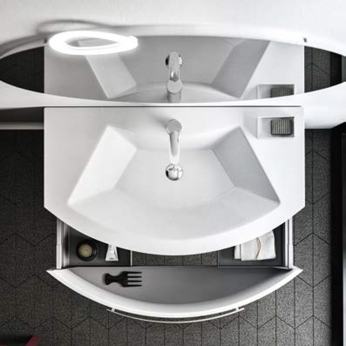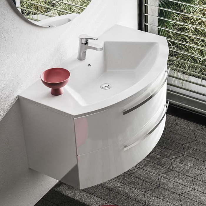 —Cerasa Cartabianca Комплект мебели 95х48х36 см, подвесной, с базой под раковину, раковиной, зеркалом TONDO, цвет: Bianco Lucido