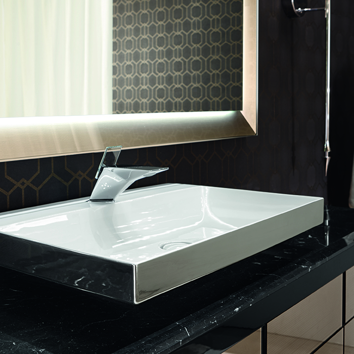 VITAGE milldue edition Раковина LONDRA 700х500х125 мм., керамическая, без перелива, c 1 отверстием для смесителя, цвет белый/платина
