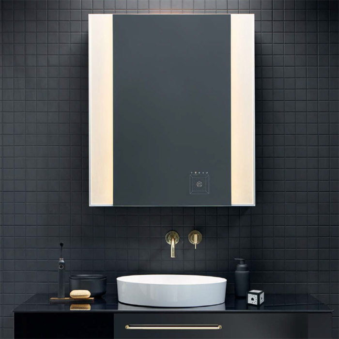 Burgbad RL40  Зеркальный шкаф  с управлением светом  80х80х32см ,1 зерк. дверка с обоих сторон,3 стекл полки, светод подсв., цвет: серый