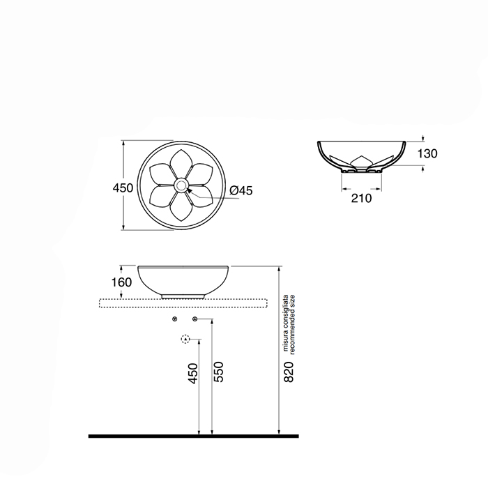 AZZURRA FLEUR Раковина накладная круглая диаметр 45хh16см, без отв. под смеситель, цвет белый Не производится