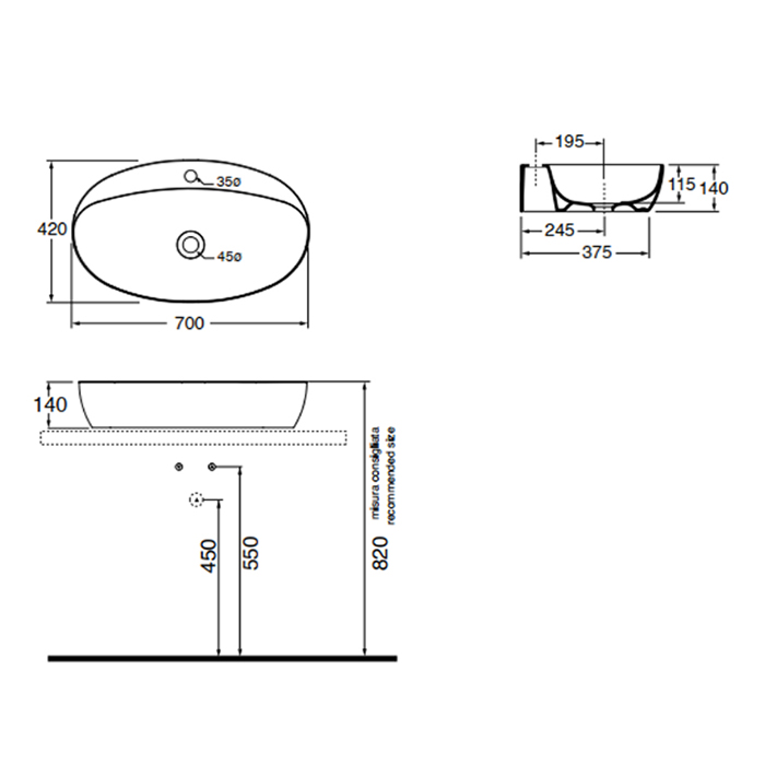 —AZZURRA ELEGANCE Раковина 70х42 см, 1 отв., накладная, цвет: белый