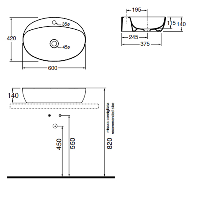 AZZURRA ELEGANCE CIRCLE раковина накладная 60х42см с 1 отв. под смеситель, цвет белый (цена по акции со склада!)