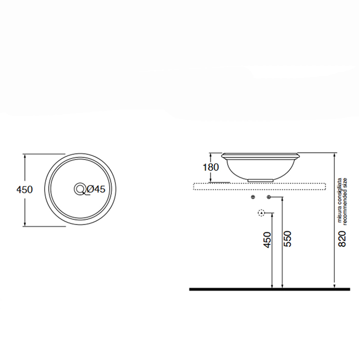 AZZURRA JUBILAEUM раковина накладная круглая диаметр 45*h18см без отв-й под смеситель, цвет белый