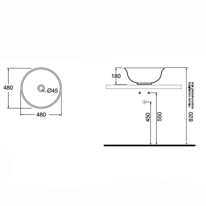 AZZURRA JUBILAEUM раковина накладная круглая диаметр 48*h18см без отв-й под смеситель, цвет белый