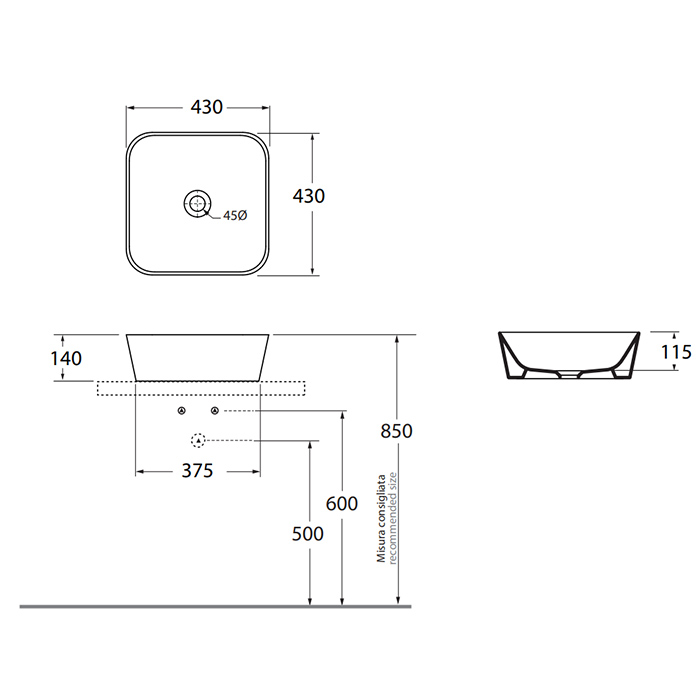 —Azzurra Build Раковина 43х43х14 см, без отв., накладная, цвет: белый