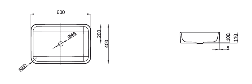 BETTEART Раковина на столешницу,60х40хh11 cм,эмалированная,без отверстия под смеситель и перелива,с крепежом,цвет белый
