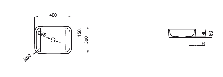 BETTEART Раковина накладная 30х40х9 cм, без отв под смеситель, без перелива, с креплением. цвет белый