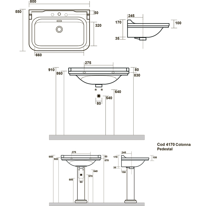 —Kerasan Waldorf Раковина 80х55 см, 3 отв., керамическая, цвет: белый/хром