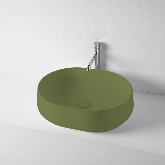 KERASAN F10 Раковина накладная 56х44 см, без отв под смеситель, цвет зеленый матовый