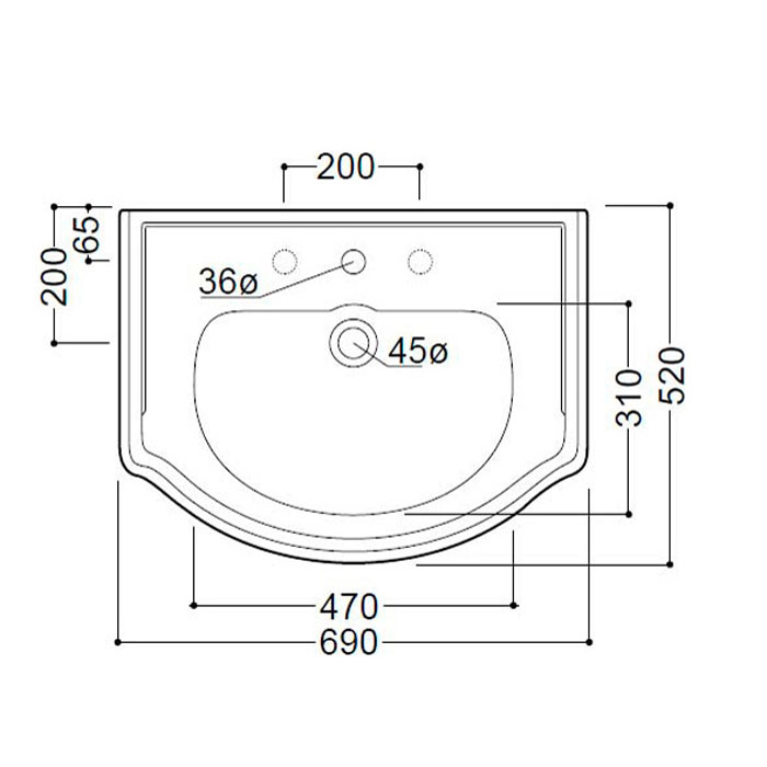 Kerasan Retro 69 Раковина 69х52 см, без отв., цвет: белый