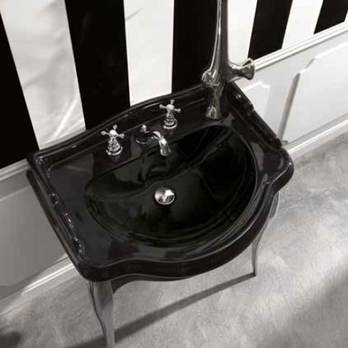 KERASAN Retro 69, раковина 69*52см с 1 отв., цвет: черный глянцевый
