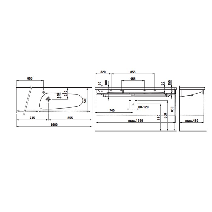 Laufen Palomba Раковина 1600х500х40мм без отв. под смеситель, накладная, с покр. LLC, цвет: белый