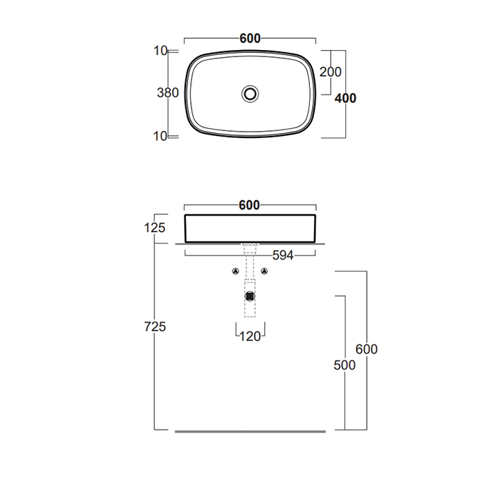 SIMAS Folio Раковина прямоугольная накладная 60x40x13 см, без отв под смеситель, цвет: белый