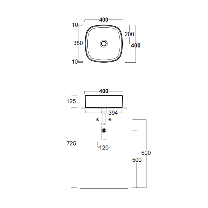 SIMAS Folio Раковина квадратная накладная 40x40x13 см, без отв под смеситель,цвет белый