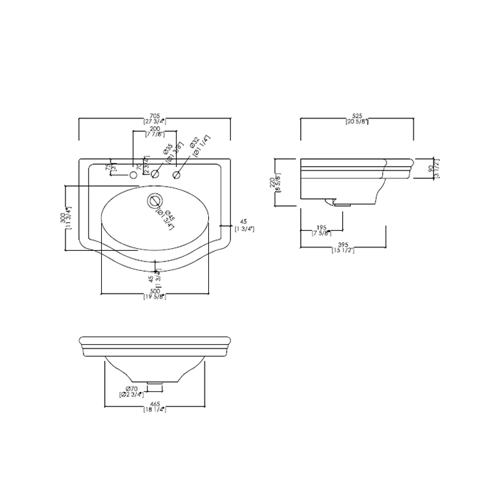 —Devon&Devon New Etoile Раковина 70.5x52.5x22 см, 1 отв., на пьедестале, цвет: белый