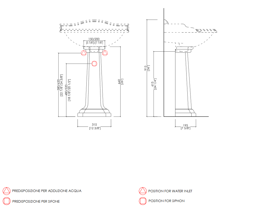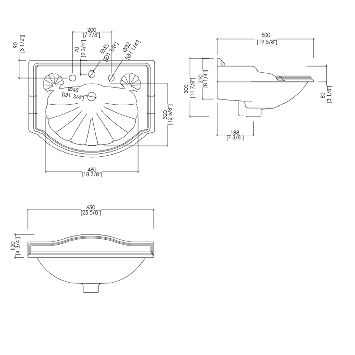 —Devon&Devon Oxford Раковина 65х50 см, 3 отв., на пьедестале, цвет: белый