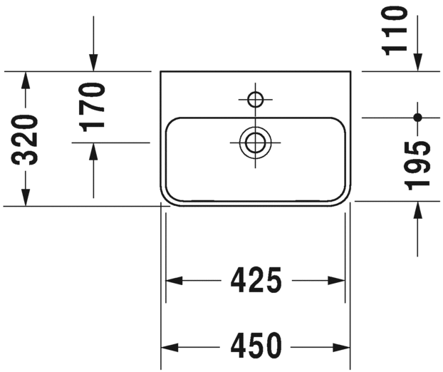 Duravit ME by Starck Раковина для рук с перел., с намеченой облостью под смес., 450x320мм, Цвет: Белый