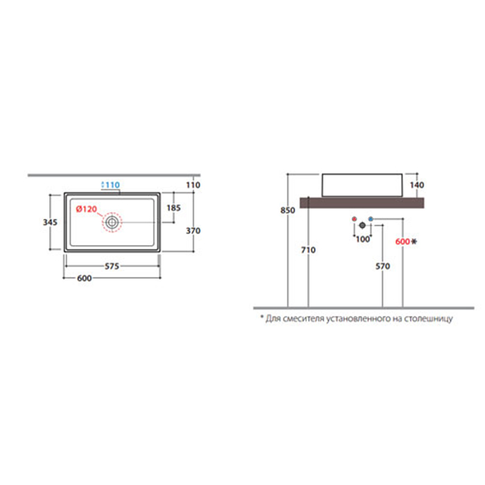 • Встраиваемые раковины
