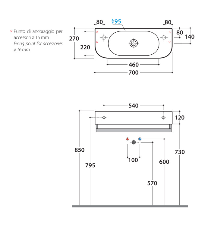 —Globo Forty3 Раковина 70х27 см, без отв., без перелива, с креплением, цвет: белый