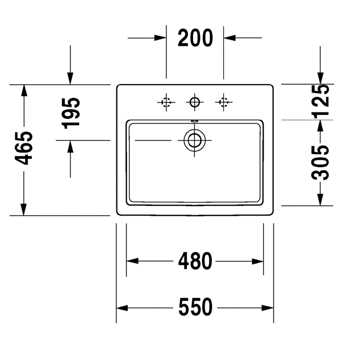 Duravit Vero Раковина  встраиваемый для встраивания сверху, с перел., с 3 отв. под смес., 550x465мм, Цвет: Белый
