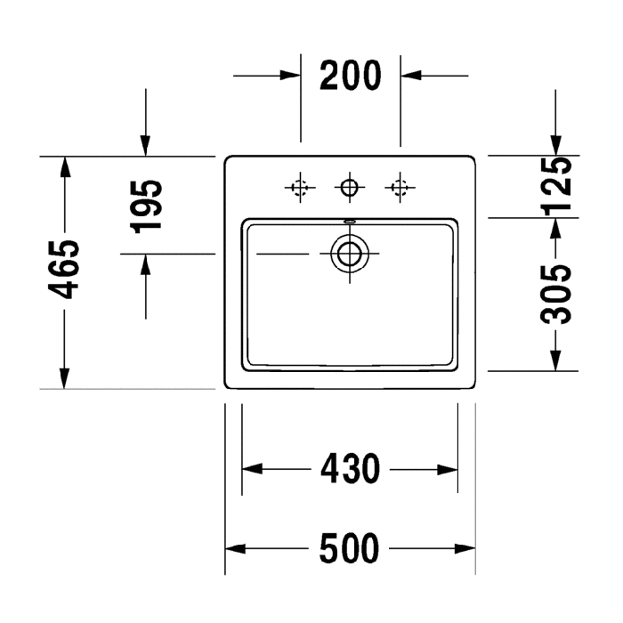 Duravit Vero Раковина  встраиваемый для встраивания сверху, с перел., с 3 отв. под смес., 500x465мм, Цвет: Белый