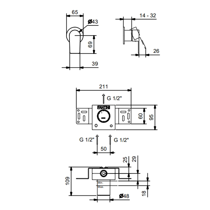 Fantini Внутренняя часть смесителя для душа, 1 источник, 1/2"