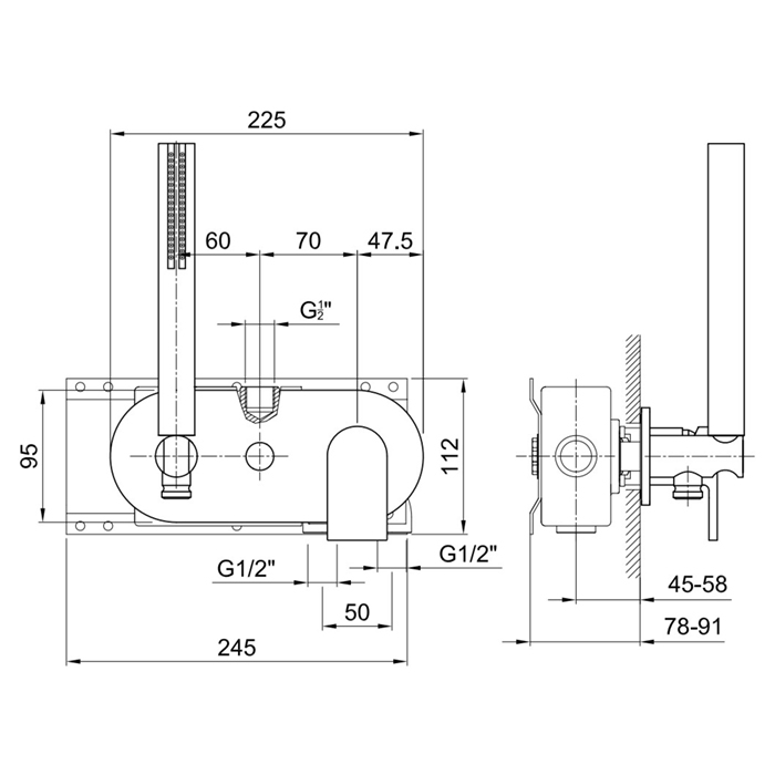 • Пристенные ванные