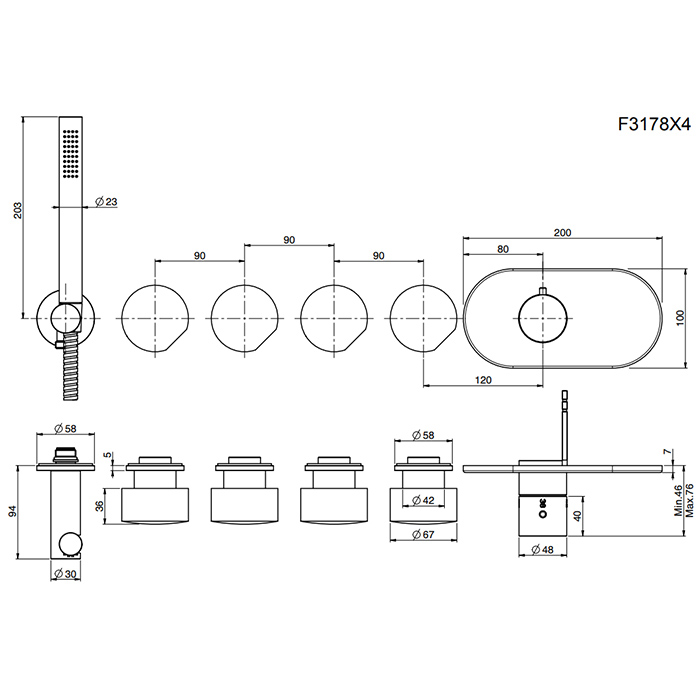 FIMA|Carlo Frattini Внутренняя часть встраиваемого термостатического смесителя для душа, 4 источника