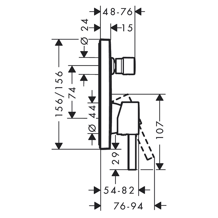HANSGROHE FINORIS Смеситель для душа встраиваемый, однорычажный, с переключателем на 2 положения, внешняя часть, цвет белый матовый