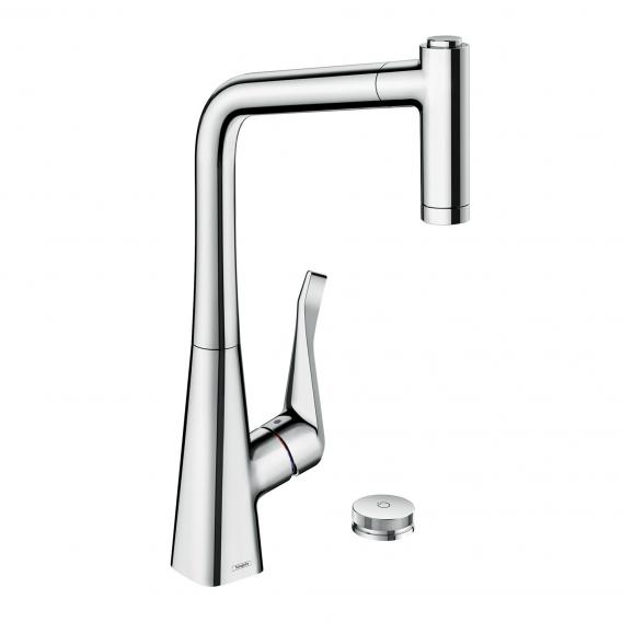 —Hansgrohe Metris Select M71 Смеситель для кухни, на 2 отв, поворотный излив: 23.6см с вытяжным душем, 2jet, h32см, sBox, кнопка вкл/выкл, цвет: хром