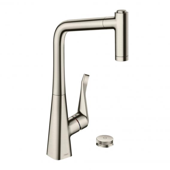HG Metris Select M71 Смеситель для кухни, на 2 отв, поворотный излив 236мм с вытяжным душем, 2jet, h320мм, sBox, кнопка вкл/выкл, цвет:  под сталь
