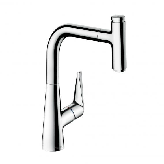—Hansgrohe Talis Select M51 Смеситель для кухни, на 1 отв, поворотный излив: 20.8см с вытяжным душем, 1jet, h:22.3см, sBox, кнопка вкл/выкл, цвет: хром