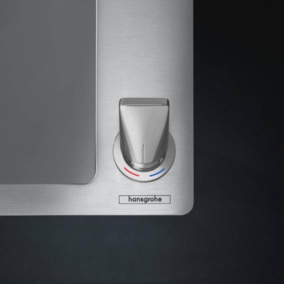 —Hansgrohe Metris Select M71 Смеситель для кухни, на 2 отв, поворотный излив: 22.1см с вытяжным душем, 1jet, h:20.8см, sBox, кнопка вкл/выкл, цвет: нержавейка