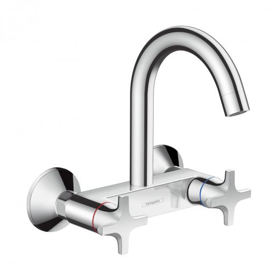 HG Logis Classic Смеситель для кухни настенный, поворотный излив 144мм, с 2 ручками "+", цвет: хром