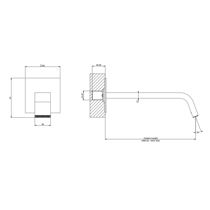 Gessi Rettangolo XL Настенный излив с индивидуальной длиной (70-300мм), для монтажа с удаленным управлением 26105/26209 (не входит в комплект), цвет: