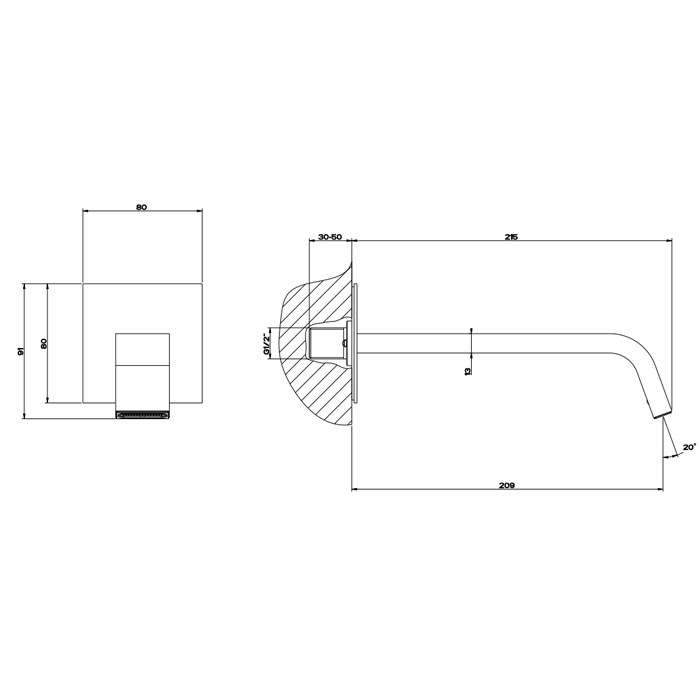 —Gessi Rettangolo XL Настенный излив 207мм, для монтажа с удаленным управлением, цвет: хром