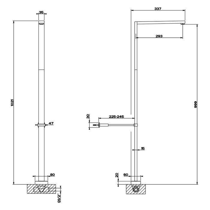 —Gessi Rettangolo Напольный излив для ванны h1021мм, внешняя часть, цвет: хром
