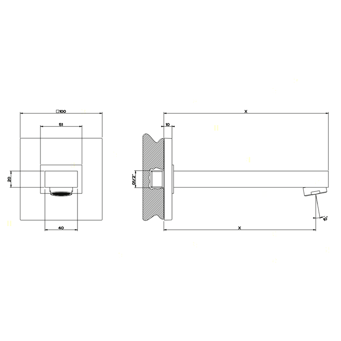 —Gessi Rettangolo Настенный излив для ванны, для монтажа с удаленным управлением (не входит в комплект), индивидуальная длина, цвет: хром